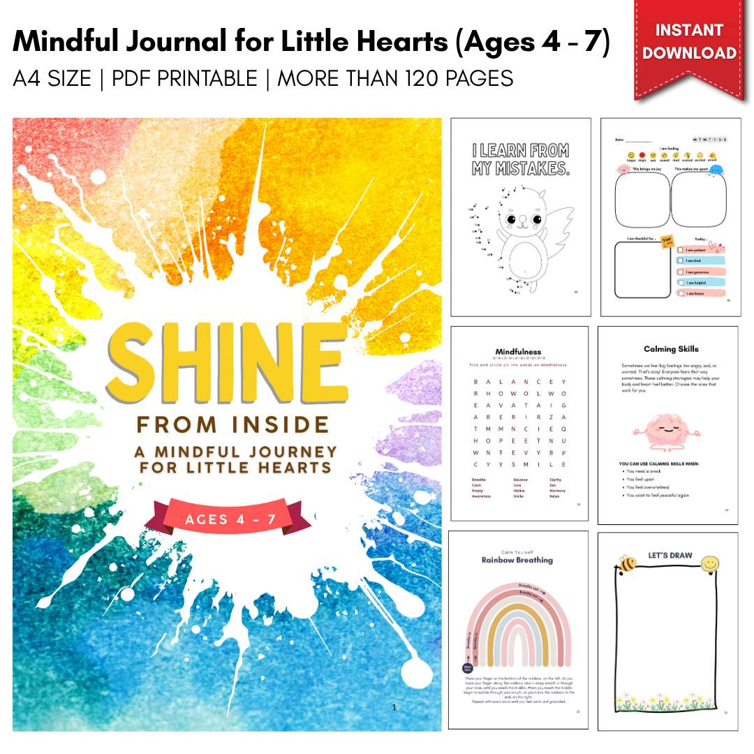 Help your child discover their inner calm, confidence, and gratitude with Shine from Inside — a mindfulness and gratitude journal designed especially for kids aged 4 – 7.